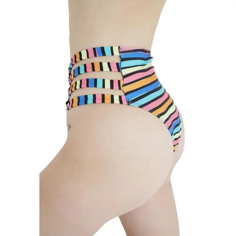Malla de mujer bikini rayas vedetina tiro alto.