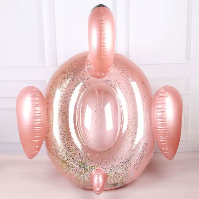 Inflable de flamenco con glitter dorado. Medidas aproximadas 138cm x 123cm.